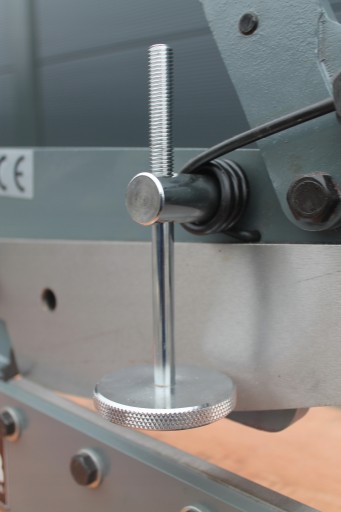 W zestawie z maszyną, znajduje się metalowy docisk, który przytrzymuje cięty materiał.