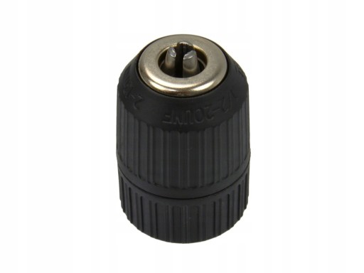 Mechanizm samozaciskowy pozwala na zamocowanie wiertła bez użycia kluczyka. Obudowa głowicy wykonana z tworzywa sztucznego.