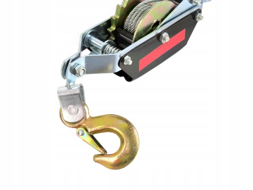 Ręczna wciągarka linowa pozioma. Wciągarka wyposażona została w 1-trybowy mechanizm blokujący, stalową linę o średnicy 4,5 mm i długości 1,8 m, co w połączeniu z wytrzymałymi hakami generuje siłę uciągu na poziomie 2000 kg.