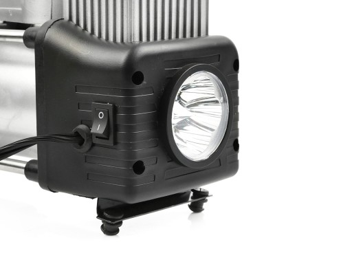 Kompresor samochodowym 250W zasilany napięciem 12-13,5V z gniazda zapalniczki lub bezpośrednio z akumulatora. Wyposażony w czytelny manometr ze stalą w 3 jednostkach: Bar, PSI oraz kg/cm2. Posiada nakręcaną końcówkę przystosowaną do wentyli samochodowych, które stosowane są również w motocyklach oraz rowerach. Wbudowana latarka umożliwia komfortowe korzystanie z kompresora w nocy, bez konieczności posiadania dodatkowego źródła światła. Dodatkowo w zestawie znajduje się pneumatyczny wąż spiralny oraz komplet 3 końcówek do pompowania piłek, materacy itp.