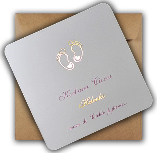 - jedyna w swoim rodzaju prośba o zostanie Matką Chrzestną ( ze złoconym imieniem proszonej osoby),