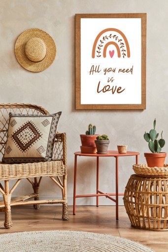 Bezwarunkowa miłość to jedno z najwyższych uczuć, które swoją wibracją i energią rozpuszcza wszelkie złe i niepożądane emocje. Uczy nas szacunku, cierpliwości, zrozumienia i komunikowania się w łagodności. Zatem czego potrzebujesz? To proste..."All you need is love. Nasz motywacyjny plakat z pewnością znajdzie dla siebie miejsce w niejednej przestrzeni. Odnajdzie się w salonie, w kuchni, w pokoju dziecka, w biurze lub w lokalu usługowym. Co najważniejsze będzie ciągle przypominał o sile bezwarunkowej i bezinteresownej miłości, pozwalając nam na zatrzymanie się i chwilę refleksji.