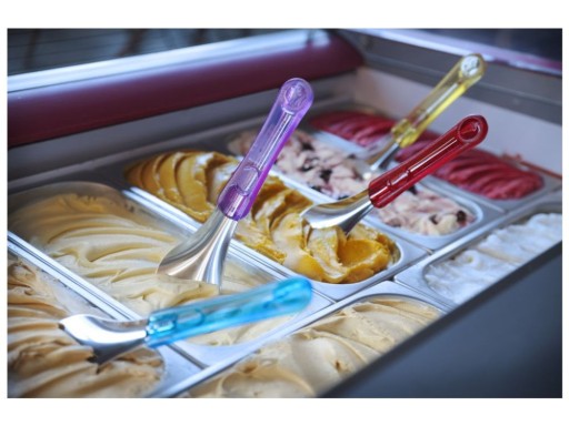 Szpatuła do lodów w kolorze niebieskim, z uchwytem wykonanym z tritanu.