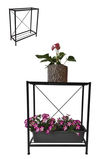 Oferujemy do sprzedaży kwietnik stojący na dwie duże donice lub kilka mniejszych. Wykonany z metalu w prostej formie bez ozdób, stabilny i wytrzymały. Dwa poziomy gwarantują dostateczną ilość miejsca. Dostępny w kolorze czarny mat. Swoje zastosowanie znajdzie zarówno w domu, ogrodzie czy na tarasie. Jego design sprawia, że wygląda świetnie w nowoczesnym wystroju wnętrz a także rustykalnym, skandynawskim czy tradycyjnym.