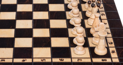 Cyfry, litery oraz pola szachownicy zostały wypalone w sklejce.