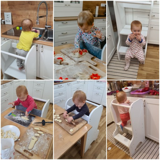 Nareszcie nie będziesz musiała dźwigać coraz cięższego dziecka na rękach. Dzięki pomocnikowi kuchennemu w spokoju przygotujesz posiłek, a Twoje małe dziecko będzie Cię z radością obserwować ;)
