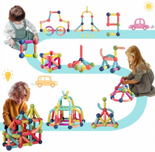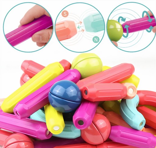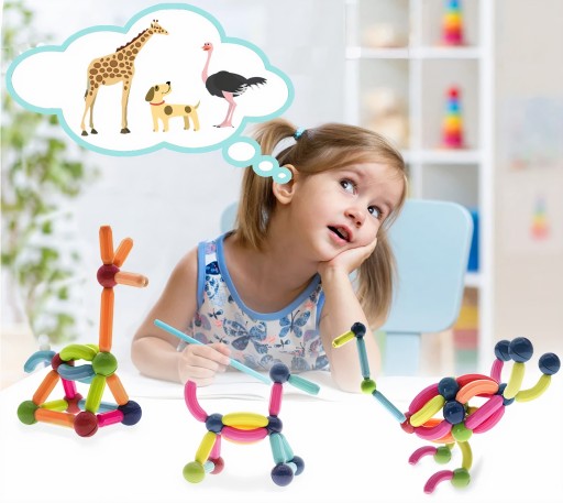 Klocki magnetyczne uczą najmłodszych cierpliwości i precyzji, a jednocześnie ćwiczą ich rączki, wspierając rozwój zdolności manualnych. Klocki edukacyjne magnetyczne pobudzają również percepcję wzrokową, rozwijają kreatywność i wyobraźnię przestrzenną. Jest to zabawka, która sprawdzi się przy nauce kolorów i kształtów, ponadto może służyć także do liczenia i wielu innych zabaw edukacyjnych.