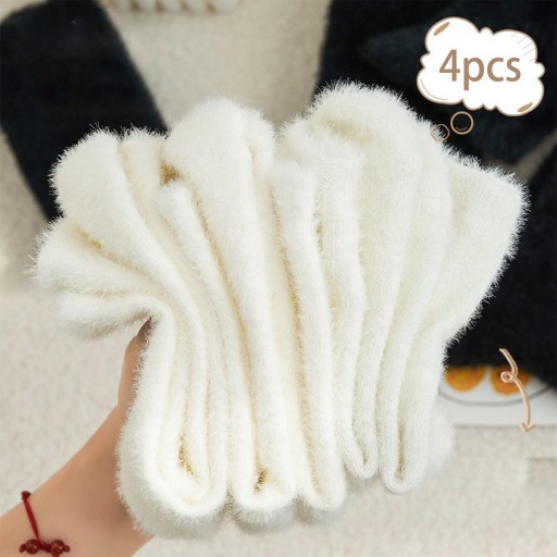 4 пары женских носков Теплые, толстые, модные осенне-зимние плюшевые носки, белые