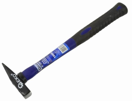 Młotek ślusarski osadzony na trzonku z włókna szklanego. Ergonomiczny trzonek z włókna szklanego pokryty termoplastycznym kauczukiem.