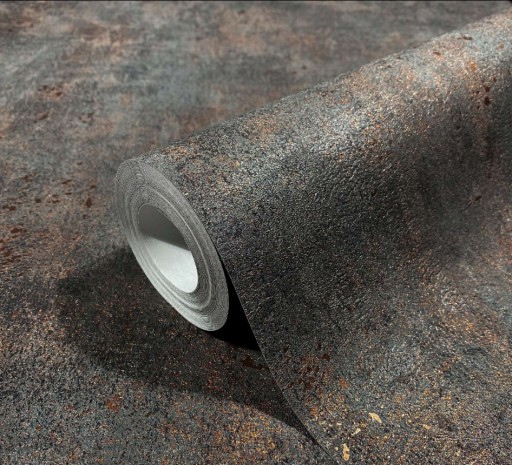 Tapety mają fakturą betonu z miedzianymi "przetarciami".