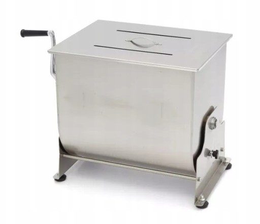 wystarczy otworzyć pokrywę i napełnić zbiornik pożądaną ilością mięsa lub ryby. Zbiornik ma pojemność 60 litrów i nadaje się do przetwarzania 39-55 kg mięsa lub ryby. Po dodaniu głównego składnika możesz dodać przyprawy, takie jak zioła, orzechy lub warzywa. Aby wszystko dobrze wymieszać, obracaj uchwytem, aż uzyskasz odpowiednią konsystencję mięsa lub nadzienia. Mikser do mięsa może obracać się w dwóch kierunkach. Uchylny zbiornik jest bardzo poręczny, gdy chcesz wyjąć zawartość, a także stanowi dużą zaletę podczas czyszczenia. Aby zapewnić dobrą przyczepność na niemal każdej powierzchni, mikser do mięsa jest wyposażony w cztery gumowe nóżki.