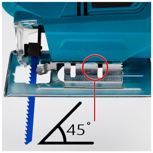 Wyrzynarka możemy pracować w 4 różnych pozycjach: 0/15/30/45 stopni na dwie strony.