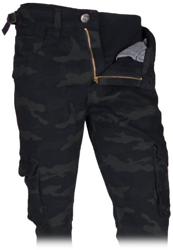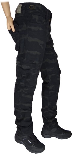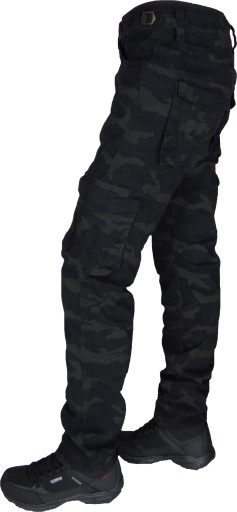 Spodnie Męskie Bojówki Ciemne Moro Rozciągliwe (stretch) z Bocznymi Kieszeniami