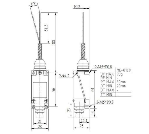 ME-8169 włącznik krańcowy sprężyna z drutem 80mm