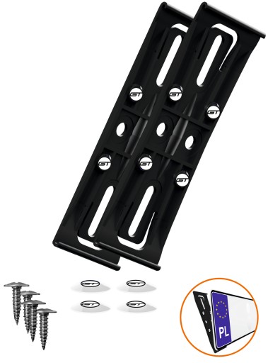 Kupujesz zestaw do mocowania 2 tablic rejestracyjnych i zawiera: 4 uchwyty do tablicy rejestracyjnej, 8 śrub montażowych, 16 naklejek antypoślizgowych.