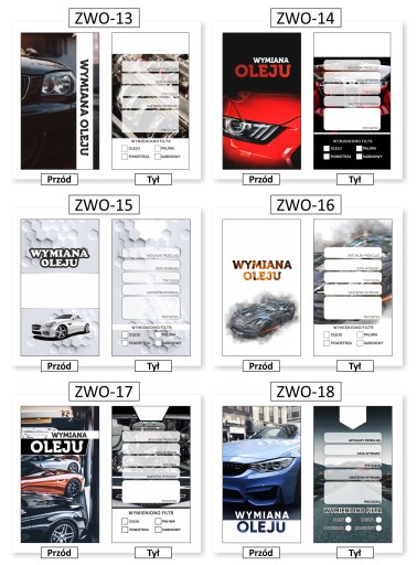 W prezentowanych szablonach zawieszek znajduje się również miejsce na pieczątkę prowadzonego przez Ciebie warsztatu. Dzięki temu Twój Klient nie zapomni do kogo ma się udać na kolejny serwis!