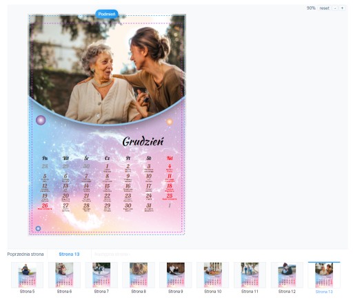 4. Dostosuj ilość i układ zdjęć w kalendarzu, zarówno na pierwszej i na pozostałych stronach.