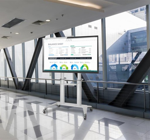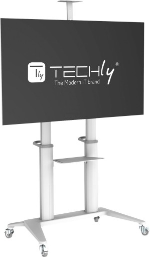 Wózek Techly ICA-TR49W, P/N: 362183 Mobilny stojak do tablicy interaktywnej lub telewizora TV LED/LCD 70 - 120 do 140kg, półka na komponenty AV oraz kamerę, regulowany, aluminiowy, biały