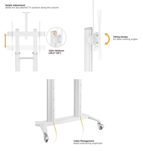 - Akcesoria w zestawie: Stojak mobilny TV LED/LCD 70 - 120 cali do 140kg Elementy montażowe Instrukcja użytkownika