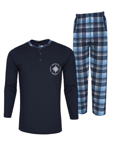 BAWEŁNIANA MĘSKA PIŻAMA Z DŁUGI RĘKAWEM I DŁUGIMI SPODNIAMI