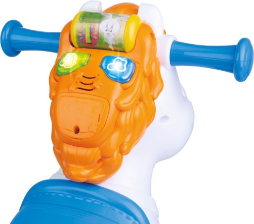 Konik gra wesołe melodyjki oraz rozwesela kolorowymi światełkami.