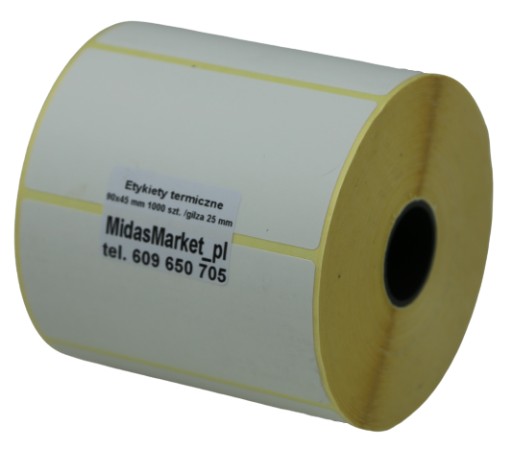 Etykiety termiczne, białe 90mm (szerokość) x 45mm (długość) z GWARANTOWANĄ ilością 1000 szt. na rolce do drukarek etykiet / kodów kreskowych.
