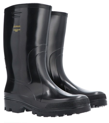 Polskie wytrzymałe kalosze Demar GRAND Black wykonane są w całości z PVC. Nie ocieplane wewnatrz, lecz doskonale chronią stopy przed wilgocią i zabrudzeniem. Odpowiednio zaprojektowana podeszwa gwarantuje bardzo dobrą amortyzację stopy w części piętowej. Kalosze te są doskonałe do prac działkowych, na wyprawy do lasu czy na ryby.