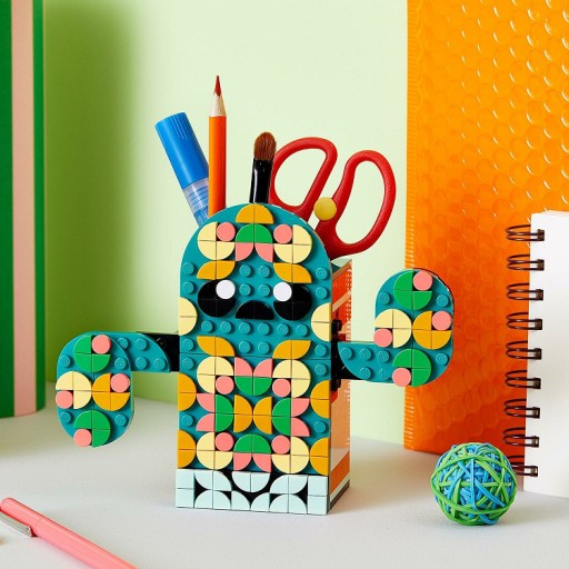 - W tym zestawie znajdziesz kilka różnych akcesoriów i ozdób DOTS do udekorowania: bransoletkę, zawieszkę z lwem, ramkę do powieszenia na ścianie oraz pojemnik na długopisy w kształcie kaktusa.