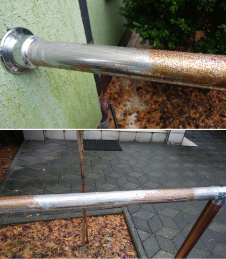 ✅ Poręcz pokryta odrdzewiaczem za pomocą ręcznika papierowego, po 15 minutach.