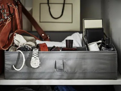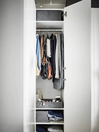 - Wymiary pasują do obudowy szafy PAX o głębokości 35 cm i zawieszanych półek SKUBB z 6 przegrodami.