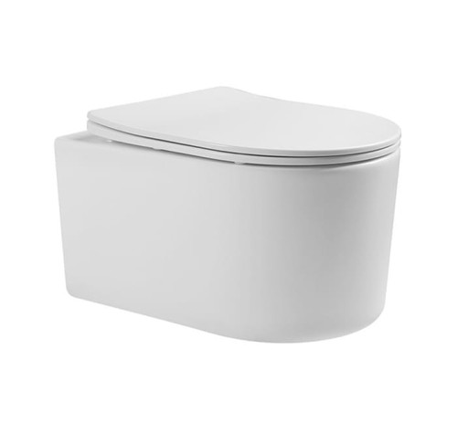 Muszla wykonana jest z ceramiki sanitarnej w kolorze śnieżnej bieli. Jej rozmiar pozwala na optymalne wykorzystanie przestrzeni, a innowaycjny systemem Rimless zapewnia funkcjonalność. W komplecie z muszlą dołączona jest deska wolnoopadająca wykonana z duroplastu, posiadająca metalowe zawiasy.