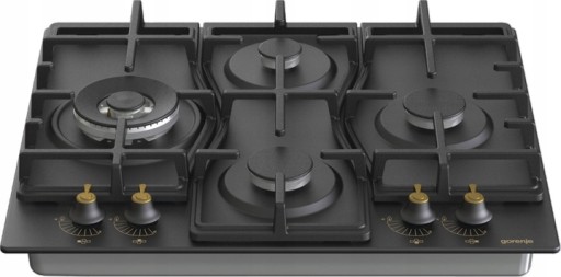 Płyta gazowa Gorenje GW6D42CLB o stylowym wyglądzie, w kolorze czarnym, o szerokości 60cm, z żeliwnymi rusztami.
