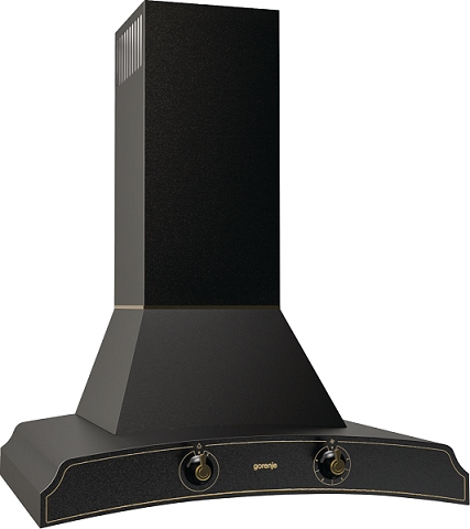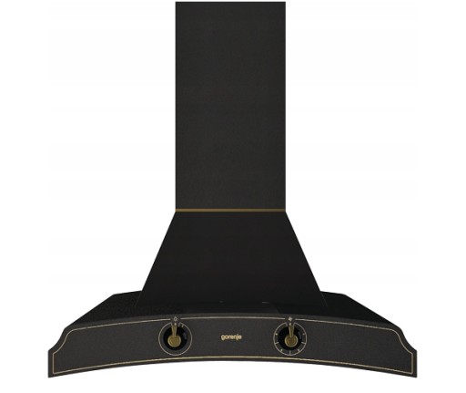 Wzór okapu w delikatnej kości słoniowej lub matowej czerni jest uzupełniony charakterystycznym uchwytem w kolorze starego złota. Tradycyjne pokrętła umożliwiają kontrolę nad okapem i jego funkcjami. Ozdobny uchwyt pasujący do projektu całej kolekcji doskonale uzupełnia wygląd okapu i podkreśla jego klasyczny charakter.