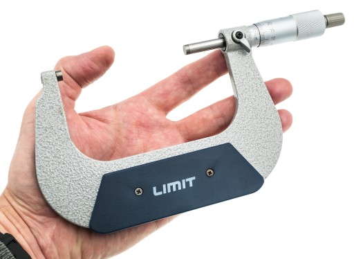Mikrometr z odkuwanym kabłąkiem i chromowaną na mat podziałką, przeznaczony do pomiarów zewnętrznych. Hartowane wrzeciono o średn. 6.5 mm z dokładnie docieranymi powierzchniami pomiarowymi z węglików spiekanych. Z tuleją ze sprzęgłem ciernym i dźwigienką ustalającą. Wykonanie zgodne z DIN 863.