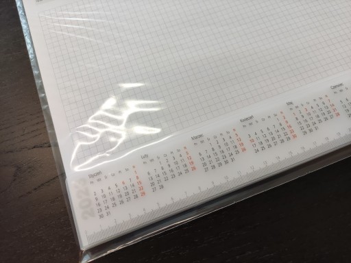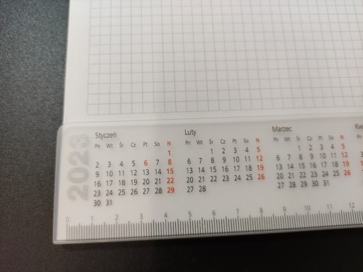 - listwa z półprzezroczstego tworzywa z linijką i kalendarzem na rok 2023;