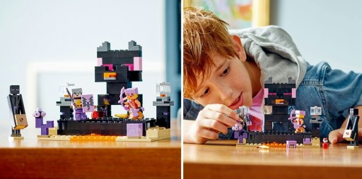 Bitwy Minecraft® jeszcze nigdy nie były tak emocjonujące jak w zestawie LEGO® Minecraft Arena Endu (21242). Gracze potrzebują umiejętności z gry, aby przetrwać podczas zabawy. Zestaw składa się z 252 elementów i jest przeznaczony dla dzieci powyżej 8 roku życia.