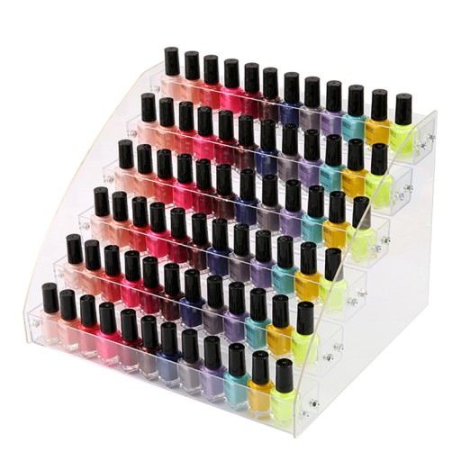 Przezroczysty materiał, z którego wykonany jest organizer pozwala na szybką kontrolę stanu lakierów. Jest to szczególnie przydatne w salonach kosmetycznych.