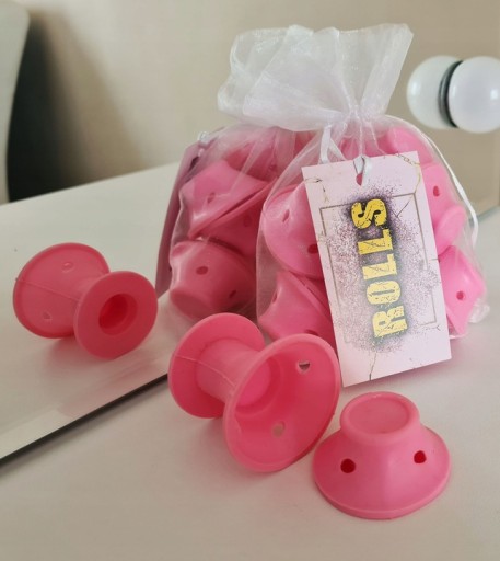 Duże lokówki o średnicy około 5 cm, zginają się do środka i utrzymują włosy w odpowiednim miejscu.
