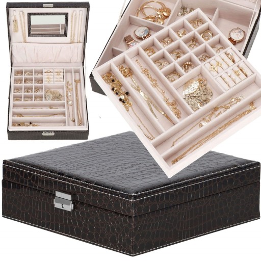 Szkatułka na biżuterię pozwoli odpowiednio zorganizować miejsce dla dodatków do stylizacji. Znajdzie swoje miejsce w garderobie, na toaletce czy komodzie. Mając wszystkie swoje ulubione elementy biżuterii w jednym miejscu możesz zapomnieć o szukaniu drugiego kolczyka, który gdzieś się zapodział bądź o rozplątywaniu naszyjnika.
