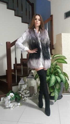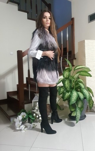 Kamizelka wykonana jest ze sztucznego futerka. Klasyczny, prosty fason. Zapinana na haftkę. Milutka i cieplutka. Po bokach kamizelki kieszonki