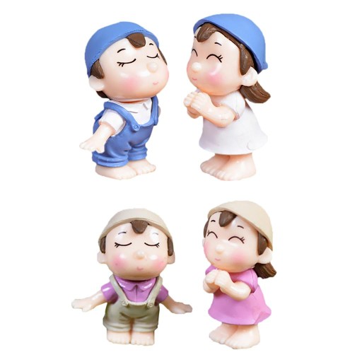 1 para Uśmiechnięte pary Miniaturowe bajki ogrodowe Bonsai Krajobraz Decor niebieski