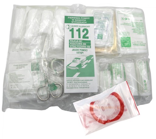 - Samochodowa apteczka pierwszej pomocy w nylonowym pokrowcu zabezpieczającym zawartość przed wilgocią.