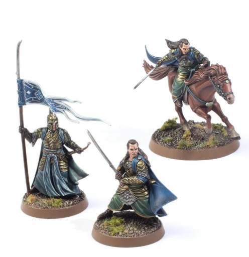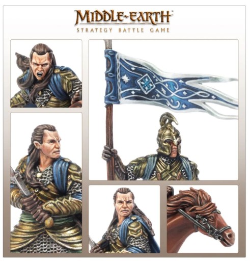 Potężny wojownik i przywódca o legendarnej sławie, Elrond stał na czele wielu wielkich bitew - walczył przeciwko Sauronowi w Wojnie Ostatniego Przymierza i był świadkiem upadku Mrocznego Władcy. To on próbował przekonać Isildura, by na dobre zniszczył Jedyny Pierścień - czyn, który zapobiegłby wielu cierpieniom w Trzeciej Erze. Poza umiejętnościami walki i zaklinania, Elrond został obdarzony darem przewidywania, dzięki czemu jest w stanie zapewnić swoim sojusznikom wielką mądrość. Elrond przedstawiony jest tutaj w skomplikowanej i ozdobnej zbroi, którą nosił podczas Wojny Ostatniego Sojuszu, a towarzyszy mu chorąży Wysokiego Elfa niosący sztandar Gil-galada.