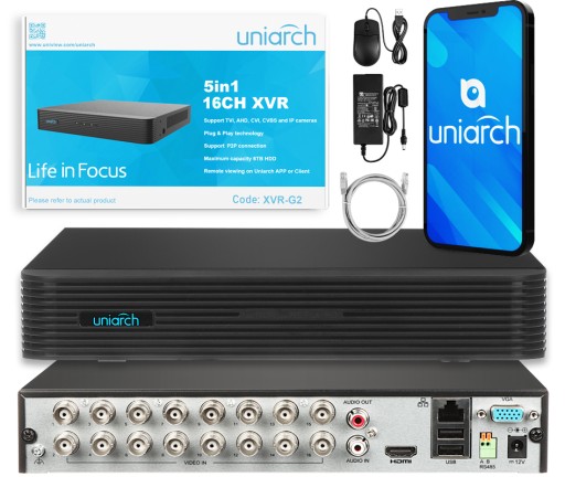 Rejestrator przeznaczony jest do kamer Uniarch / Uniview oraz innych modeli kompatybilnych ze standardem AHD/TVI/CVI lub CVBS.