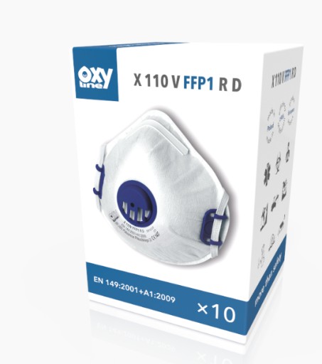 Półmaska filtrująca X 110 V FFP1 R D przeznaczona jest do ochrony układu oddechowego przed aerozolami cząstek stałych, aerozolami na bazie wody (pył, dym) oraz aerozolami z ciekłą fazą rozproszoną (mgły) dla których NDS jest ≥2 mg/m3 o ile stężenie fazy rozproszonej nie przekracza 4 x NDS.