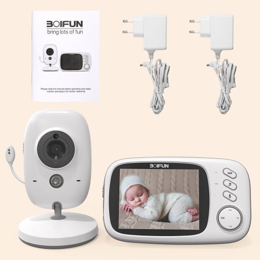 Monitorka BOIFUN z kamerą wyposażona jest w 3,2-calowy duży kolorowy ekran, pokazuje wyraźny obraz/wideo swojej ukochanej, nie przegapisz chwili wzrostu dziecka. (Kamera musi być zawsze podłączona do zasilania, jednostka macierzysta jest ładowalna i bezprzewodowa.)