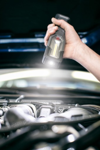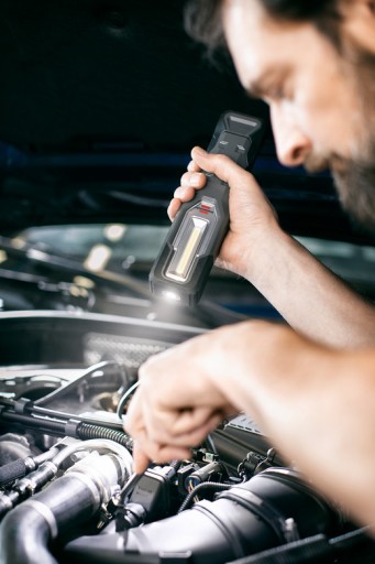- Lampa warsztatowa z gumową powłoką dla większej odporności na wstrząsy i lepszego uchwytu może być wygodnie ładowana przez kabel ładujący USB dzięki złączu ładowania USB