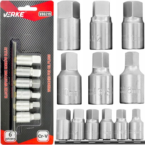 SOLIDNE KLUCZE WPUSTOWE DO KORKÓW OLEJU 6 EL. RENOMOWANEJ FIRMY VERKE®