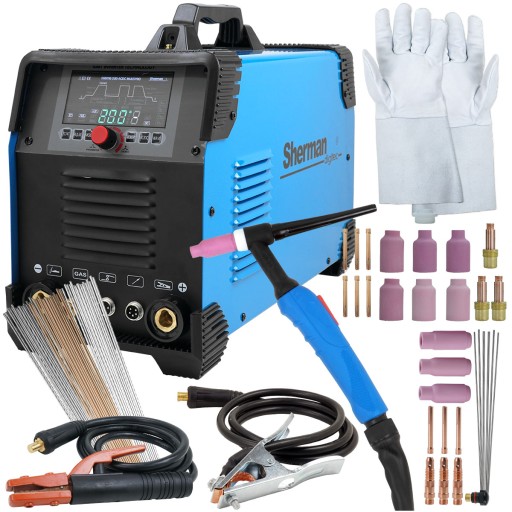 Producent: SHERMAN ||| Metody spawania: TIG AC, TIG DC, MMA ||| Maksymalny prąd spawania: 200A ||| Zasilanie: 230V 1ph