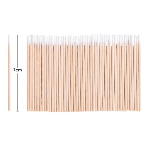 Drewniane patyczki kosmetyczne to produkt przeznaczony do oczyszczania podczas zabiegów henną lub farbką do brwi. Każdy patyczek posiada ostro zakończoną końcówkę pokrytą bawełną.